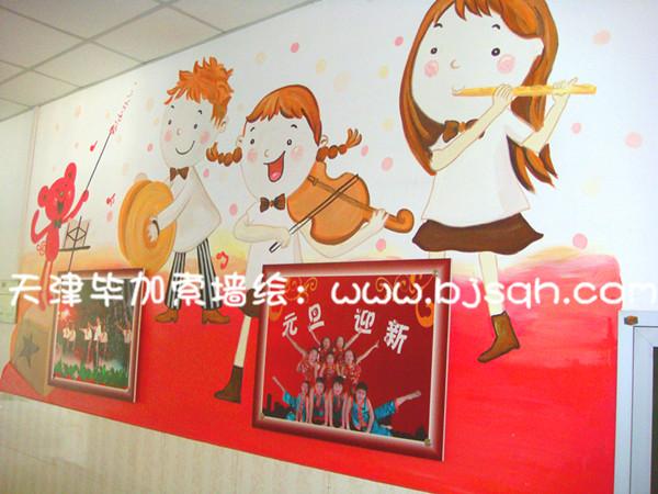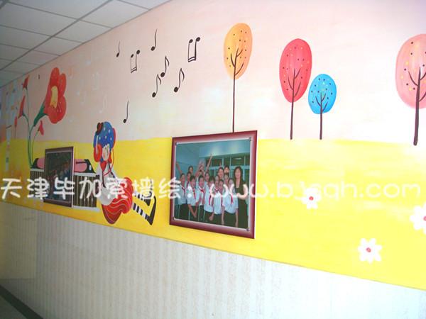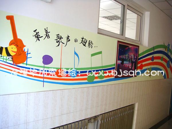 一層左邊主要是音樂教室,所以彩繪處處體現了孩子們在歡樂的音樂中的情景。